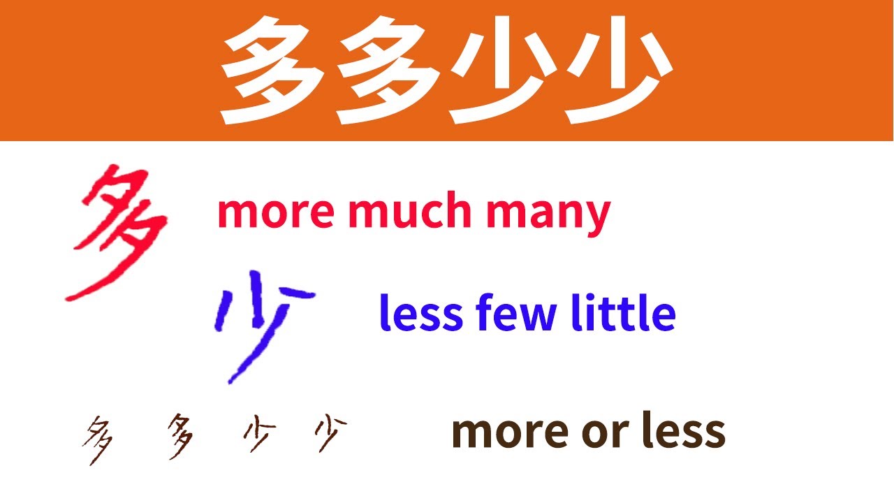 多 duō More 少 shào,shǎo Less Chinese four-character idiom | More or Less | 多多少少